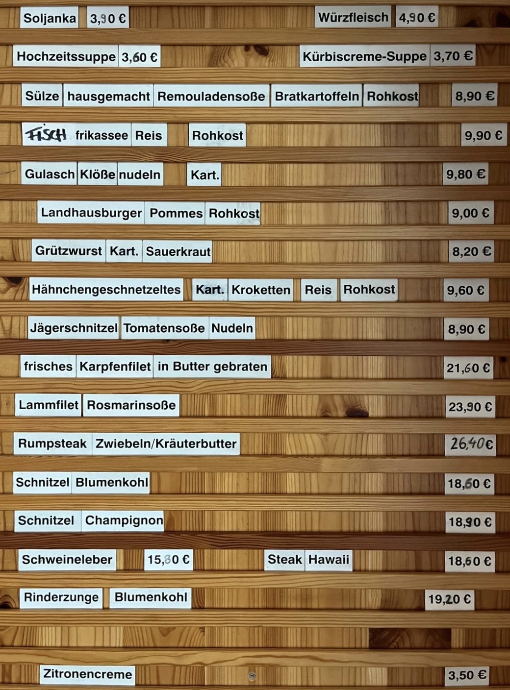 Unsere Tageskarte wird früh erstellt, kann aber im Laufe des Tages variieren. Vielen Dank für Ihr Verständnis!