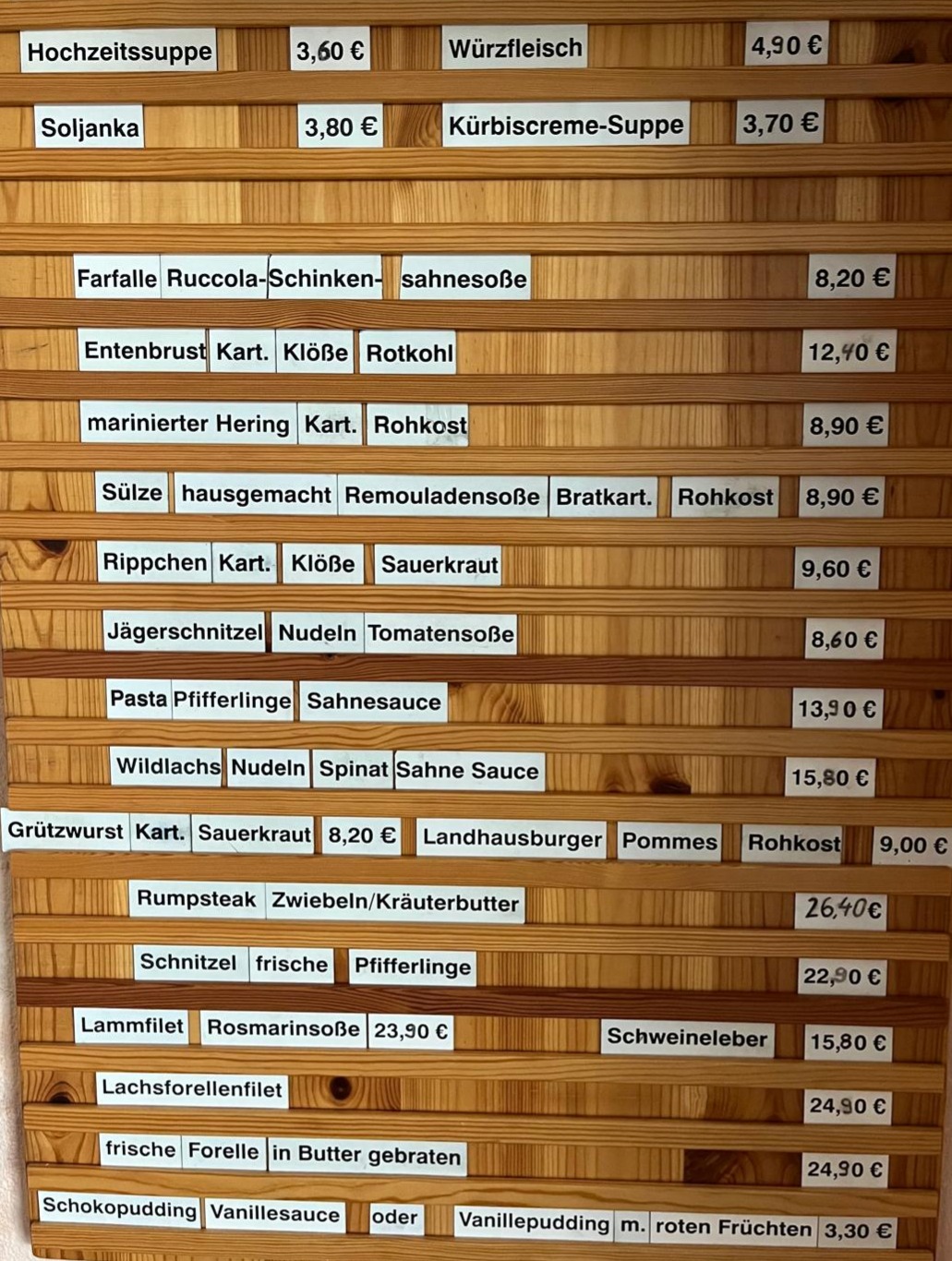 Unsere Tageskarte wird früh erstellt, kann aber im Laufe des Tages variieren. Vielen Dank für Ihr Verständnis!