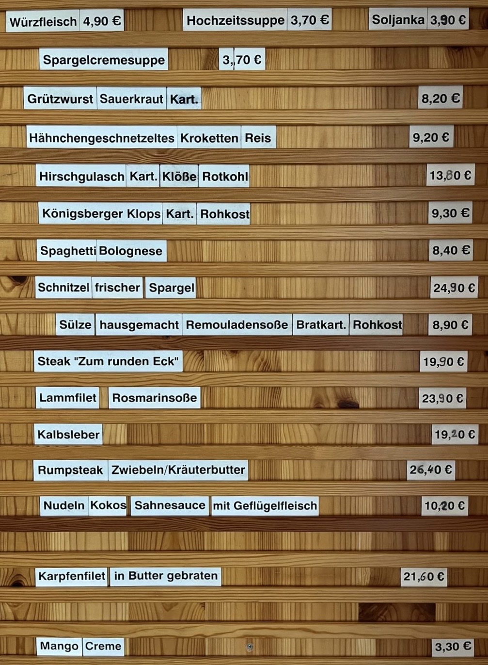 Unsere Tageskarte wird früh erstellt, kann aber im Laufe des Tages variieren. Vielen Dank für Ihr Verständnis!
